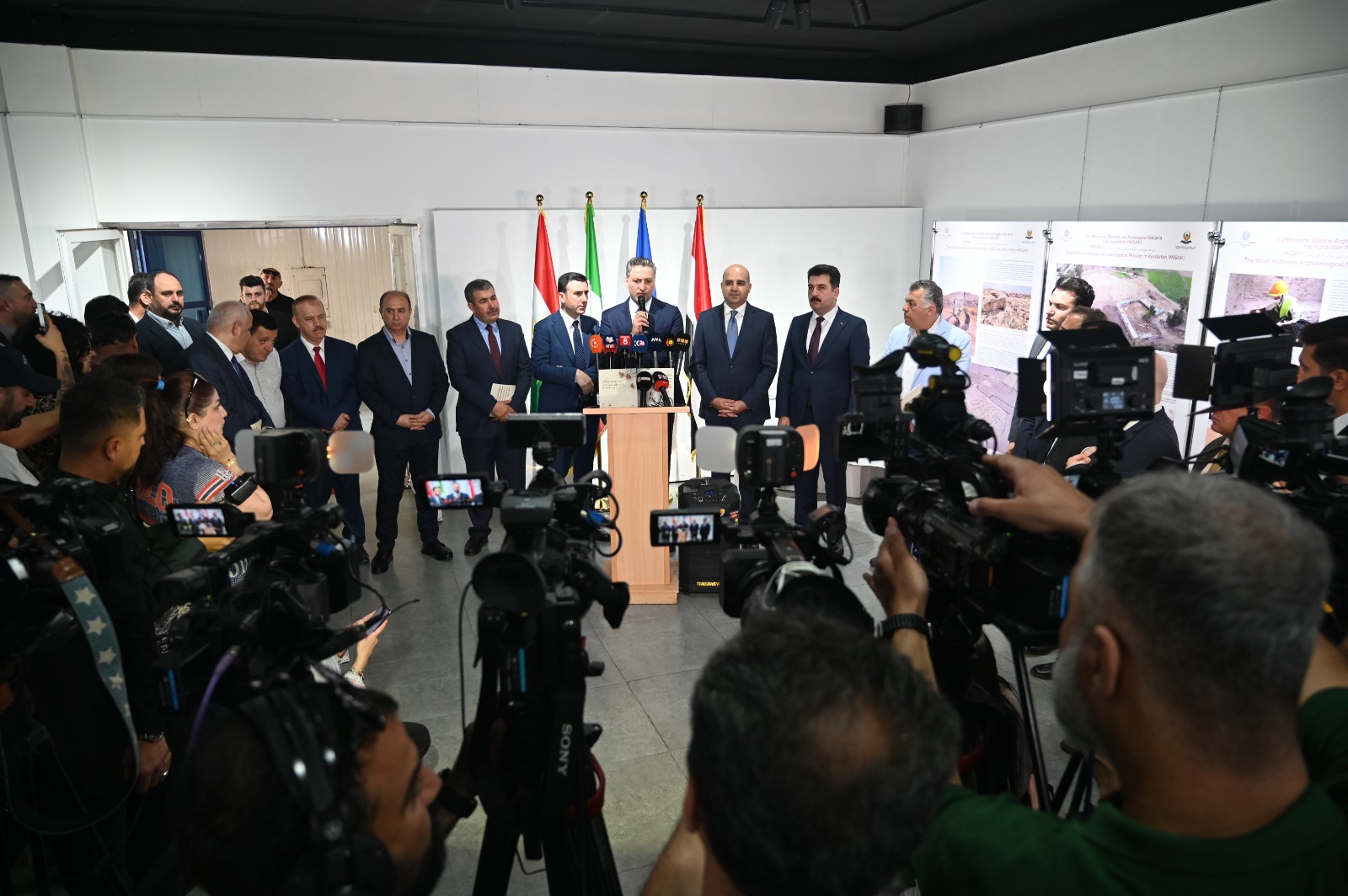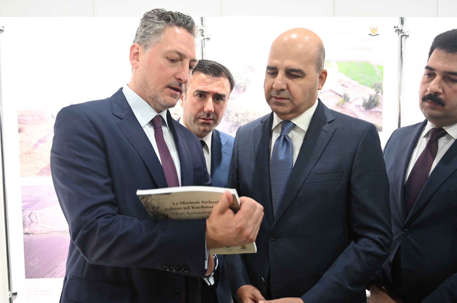 29 Apr – An exhibition dedicated to Italian archaeological missions in Iraqi Kurdistan organized by the Italian Consulate was inaugurated this morning in Erbil, at Gallery Media Hall, a few steps from the Citadel. The ribbon was cut by Consul Michele Camerota together with the Directors of the missions and Directorates of Antiquities of Kurdistan, and with the Minister of Tourism and Municipalities Sasan Awmi, who supported the event together with the Governor of Erbil Omed Khoshnaw.