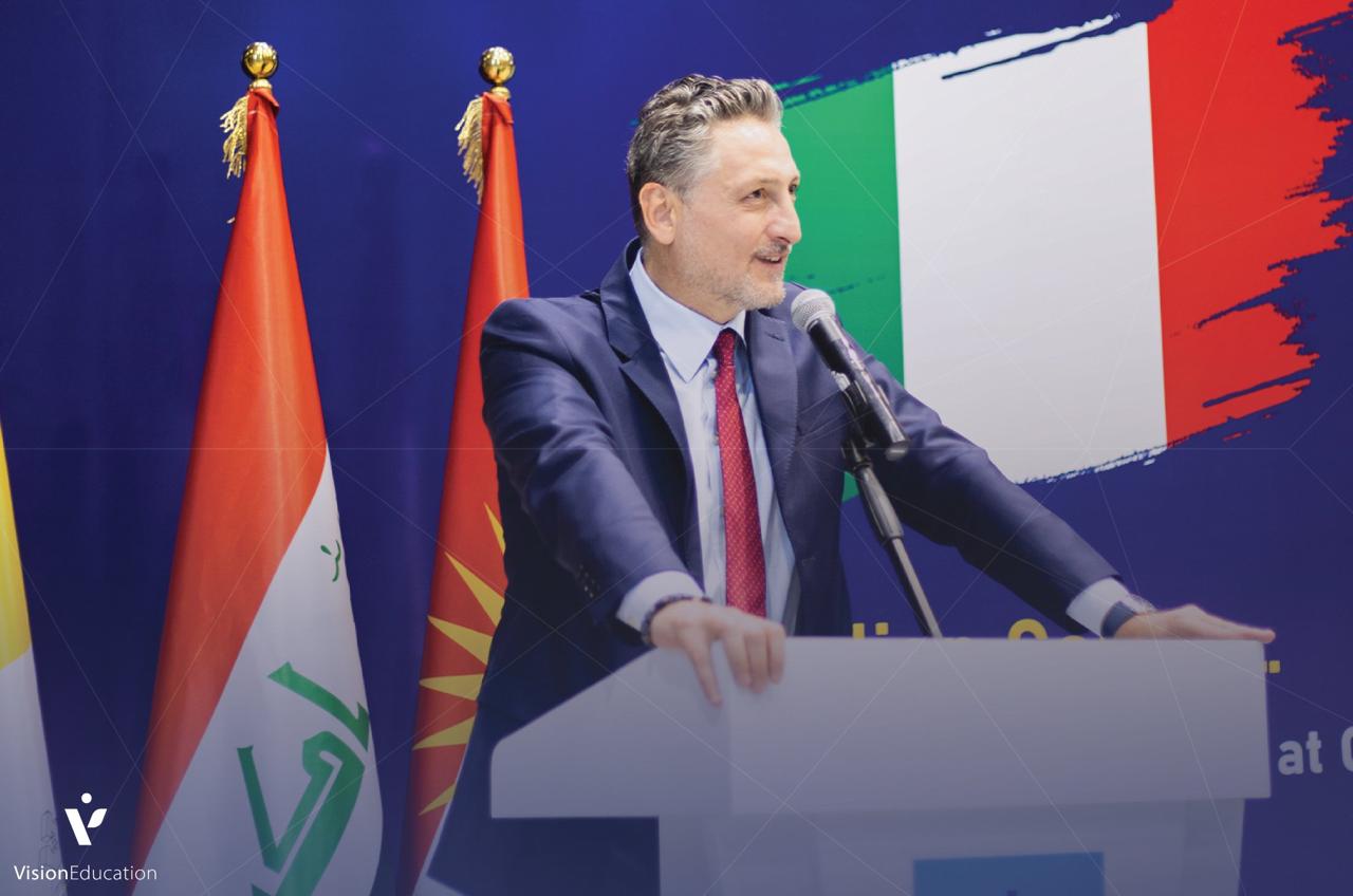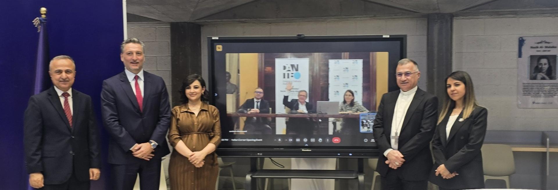 In addition to Consul Camerota, the event was attended by the Director of the Board of CUE, Bishop Bashar Warda, the President Nazar Shabila, representatives of the Vision Foundation and, connected from Rome, the Deputy Secretary General of Dante, Andrea Vincenzoni.