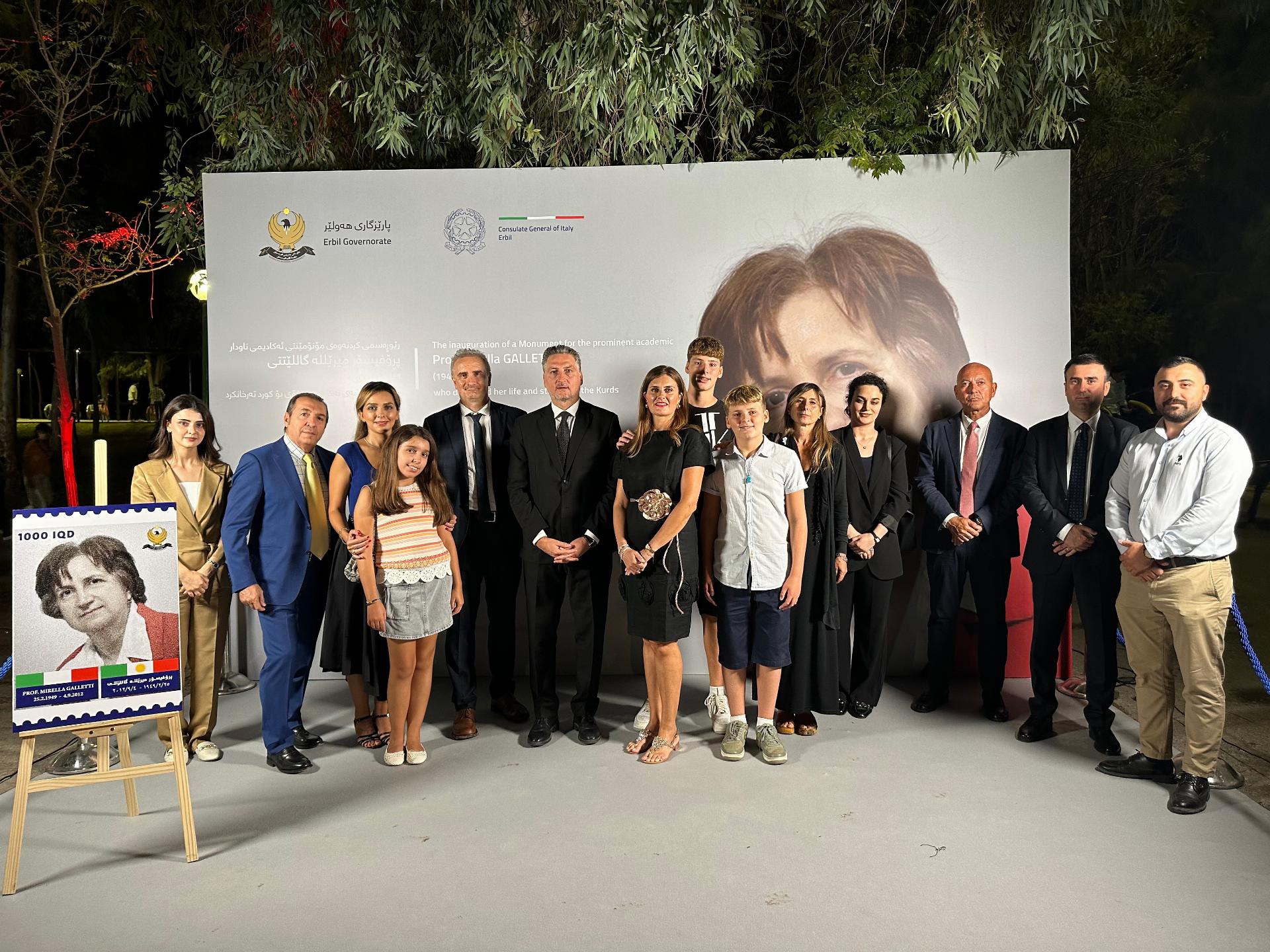 On 4 September, a monument in memory of the Italian journalist and academic Mirella Galletti, a great scholar and friend of the Kurdish people, was inaugurated on the main avenue of Sami Abdulrahman Park, the most prominent public park in the regional capital of Iraqi Kurdistan, Erbil.